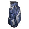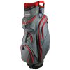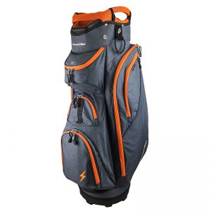 Features and Benefits 14-way divider Denim material Valuables pocket Easy carry handle 7 pockets Oversized putter well Colours Available Charcoal Denim/Orange Silver Denim/Red