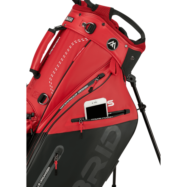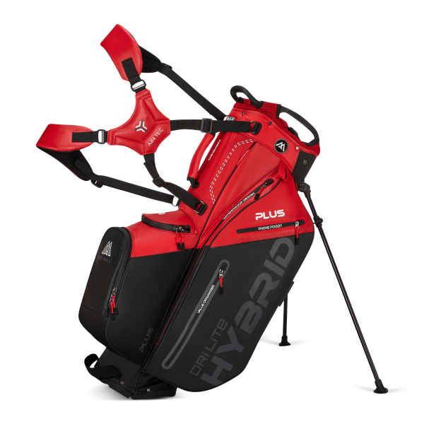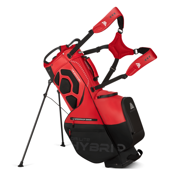As the name suggests, the Dri Lite Hybrid Plus can be used both as a stand bag and as a cart bag. This is made possible by a trolley-compatible floor with a trolley-compatible leg lock system. The bag sits firmly and squarely on a trolley.
