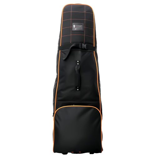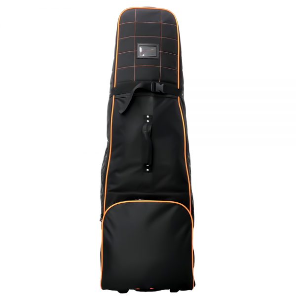 The Powerbilt Sqizzy Travel cover has Internal Padding with reinforced Grab Handle ID Tag External Shoe Pocket and Wheels.